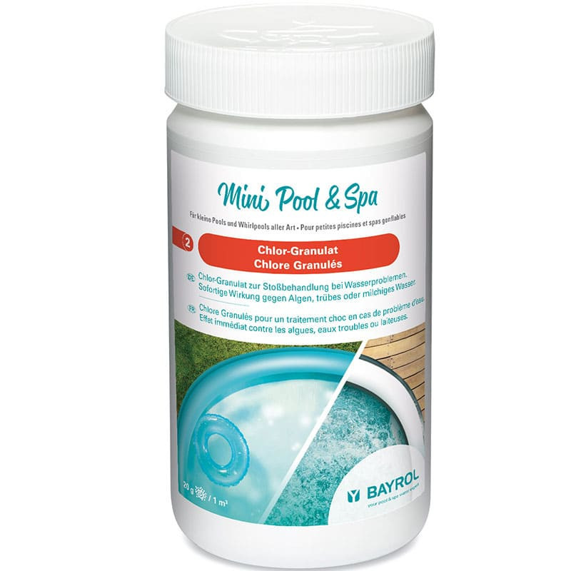 Les propriétaires de spa et de piscine savent à quel point un entretien régulier de l'eau est primordial pour continuer à profiter pleinement de son bassin. Une désinfection régulière tout au long de l'année est essentielle pour maintenir une eau saine et cristalline. C'est pour vous aidez dans cette démarche que la marque Bayrol à décider de développer le chlore en granulé pour le traitement choc de votre eau au travers de sa gamme de produit Mini Pool and Spa spécial petites piscines et spa gonflables.