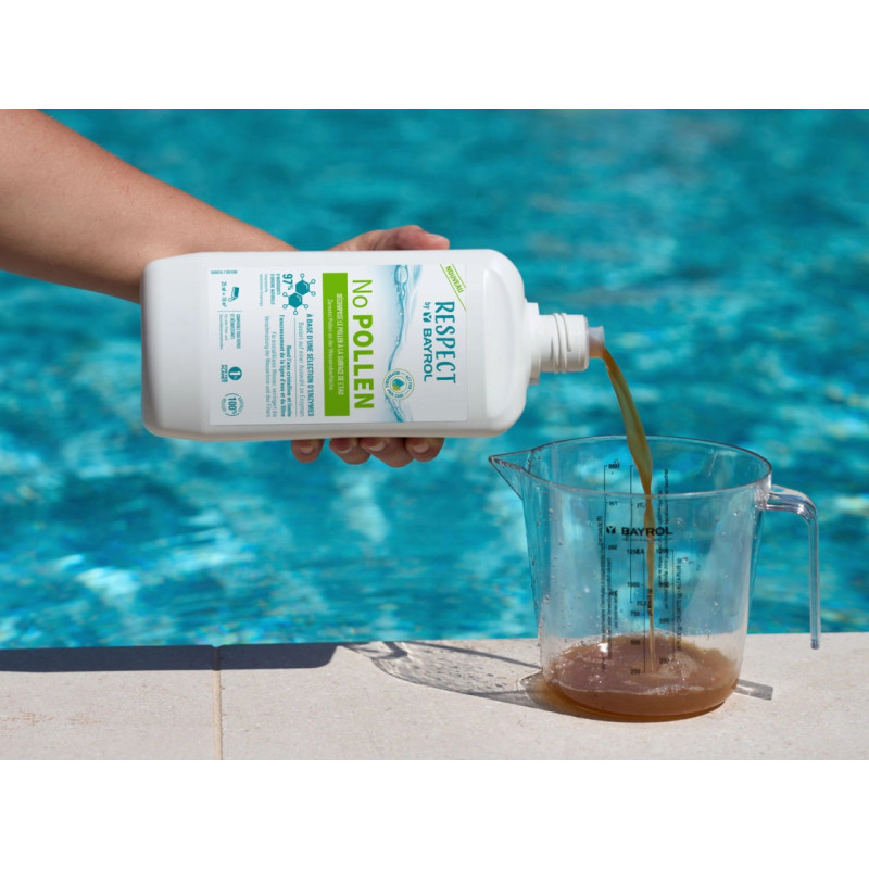 No Pollen Respect by Bayrol est un traitement liquide à base d’enzymes d’origine naturelle. L’action enzymatique du No Pollen dégrade naturellement les pollens et autres matières organiques, réduisant ainsi les dépôts inesthétiques sur la ligne d’eau et l’encrassement du filtre. Ce procédé biologique évite que le pollen ne se transforme en dépôt collant difficile à nettoyer.