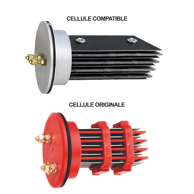 La cellule PAC-40-E9P_C est une solution de remplacement adaptée aux électrolyseurs Pacific Sel 40. Elle est conçue pour remplacer les cellules d’origine équipées d’un culot rouge, sans nécessiter de modification de l’installation existante.
