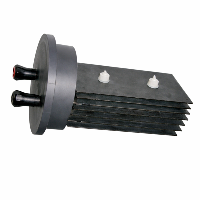 Cette cellule est dotée de 7 plaques en titane avec revêtement catalytique, assurant la production de chlore par électrolyse du sel dissous dans l’eau selon le même principe que les équipements d’origine. La disposition des plaques et le revêtement améliore la résistance à la corrosion tout en maintenant une production régulière et stable.