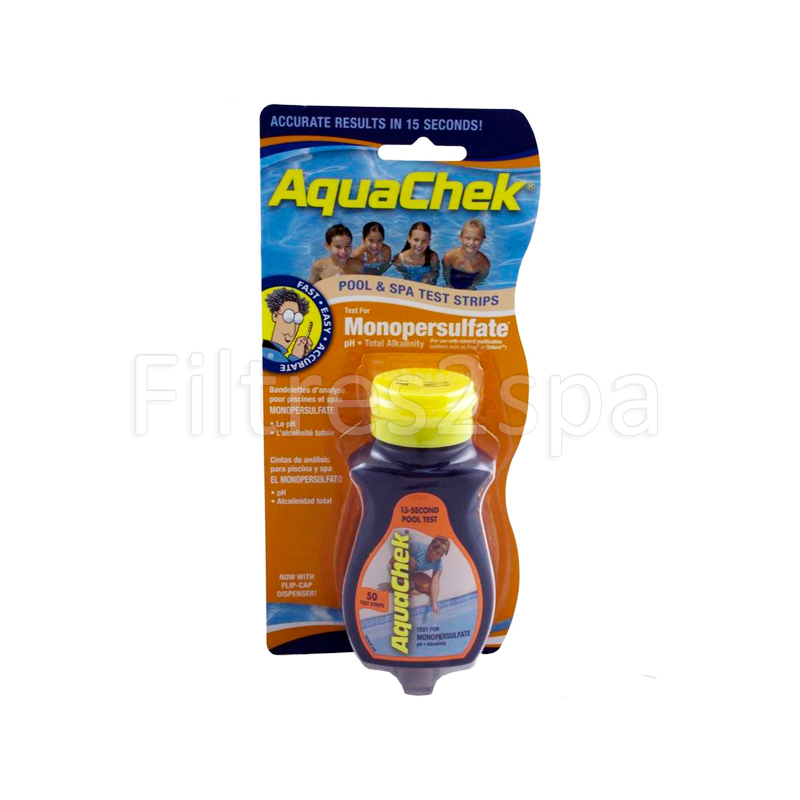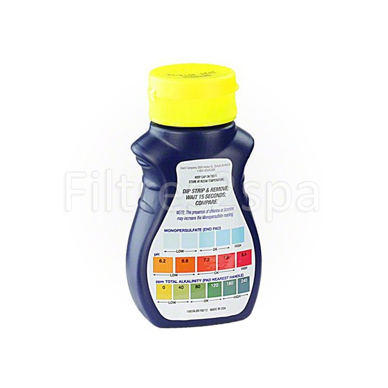 Ce produit est vendu dans un flacon contenant 50 bandelettes d'analyses. Elles permettent de tester facilement le taux de monopersulfate (MPS), un agent oxydant utilisé dans les traitement à base d'oxygène actif, ainsi que le pH et l'alcalinité de votre spa ou piscine.
